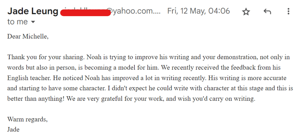 今周一位學生家長給我寫了一封很讓我很鼓舞的郵件: